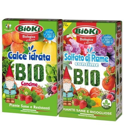 Bioki Offerta composta da Solfato di Rame da 500 g + Calce Idrata da 500 g, Alta solubilità' Indicato per Piante da orto, da frutto e da Giardino.