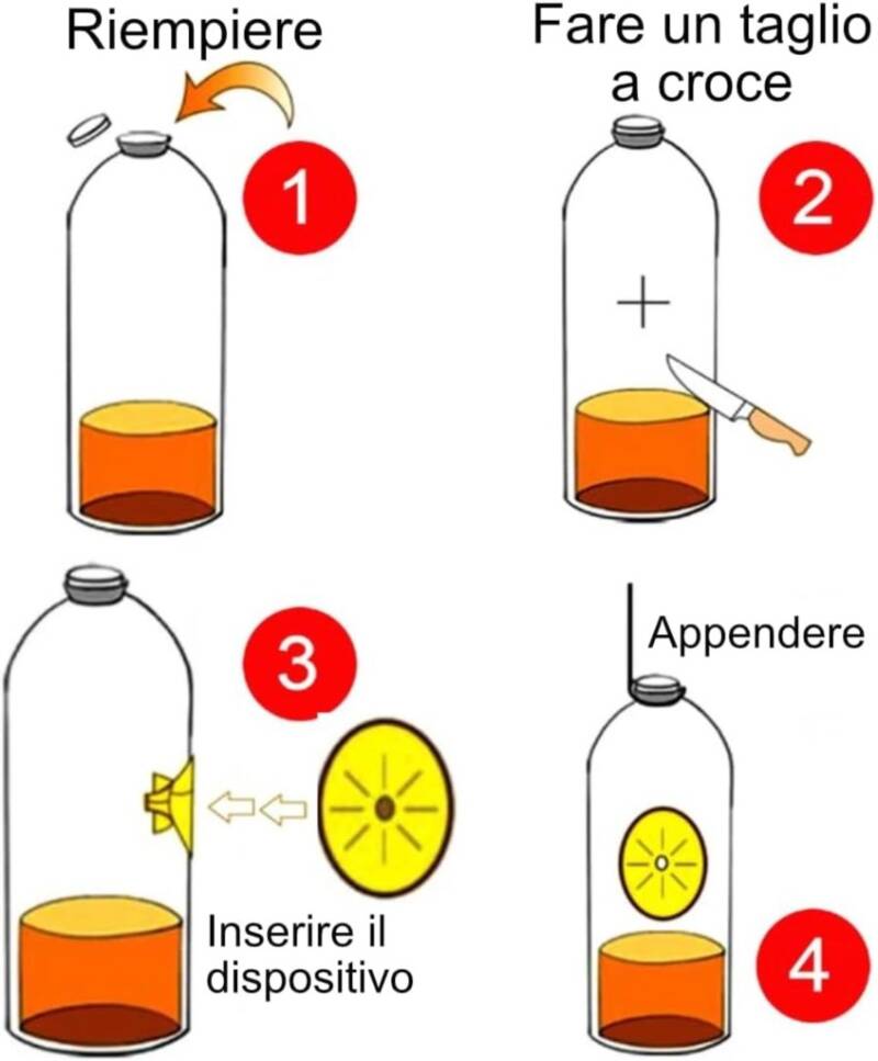 Trappola ecologica studiata per la cattura massale di insetti fastidiosi delle piante. Per la messa in funzione basta utilizzare una normale bottiglia di plastica, inserire la sostanza attrattiva ed appenderle sugli alberi. Generalmente 1 trappola è sufficiente per 2-3 piante.