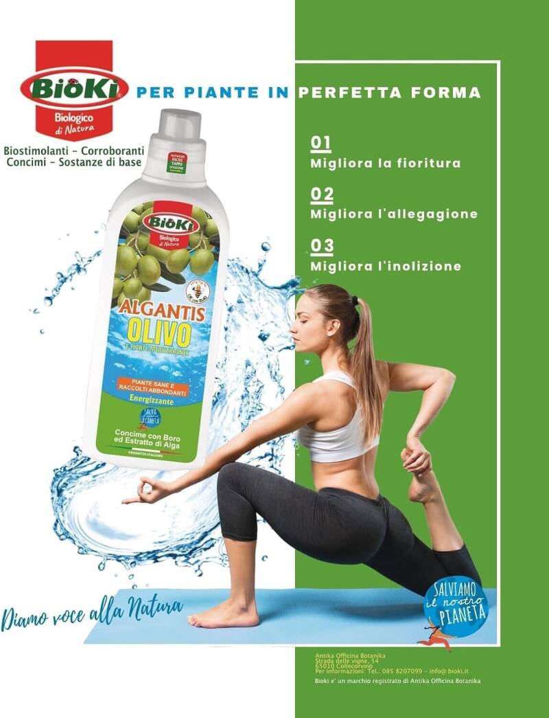 - ✔️Algantis Olivo migliora la fertilità del fiore e per la presenza di sostanze ad elevata attività biostimolante, migliora la crescita, la lignificazione dei tessuti migliorando la resistenza verso stress biotici e abiotici.