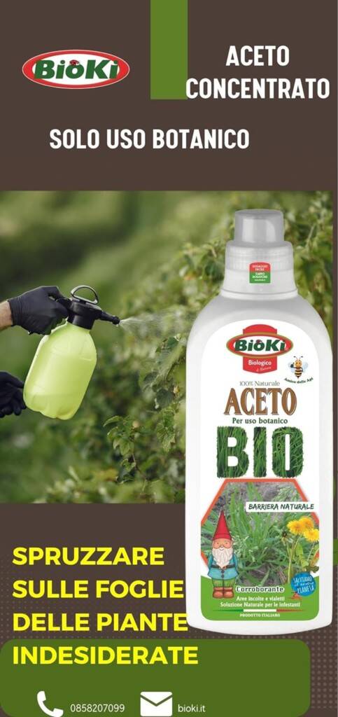 Aceto e' un prodotto 100% naturale ideale per il contenimento di erbe infestanti presenti su vialetti, sentieri, bordure. Agisce per contatto in modo non selettivo e non lascia residuo.