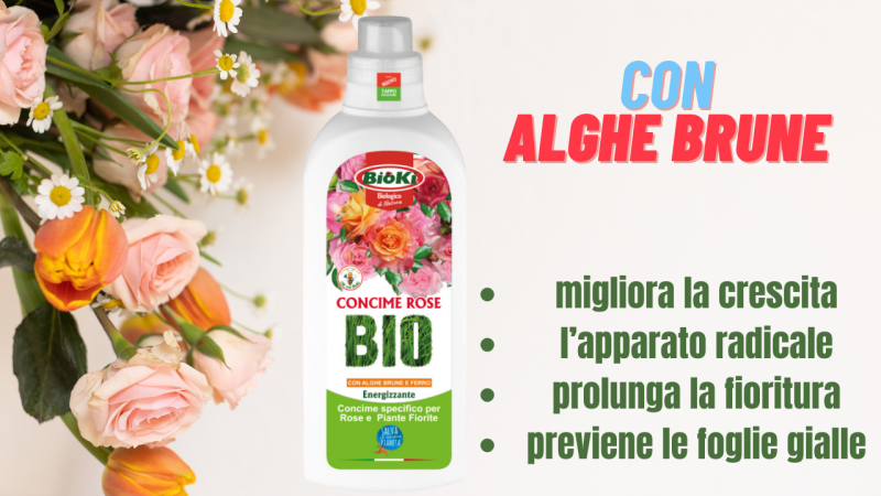 Concime per rose e' un prodotto ad alto contenuto di estratto di alga, ferro complessato, aminoacidi, proteine vegetali e bioattivatori naturali in gradoi di stimolare i processi enzimatici, prevenire microcarenze nutrizionali e lo sviluppo della microflora terricola. Il formulato e' indicato per Rose e Piante Fiorite allevate a terra o in vaso. Migliora la crescita, incrementa il capillizio radicale, prolunga la fioritura, rende le piante piu' resistenti e previene l'ingiallimento fogliare.
